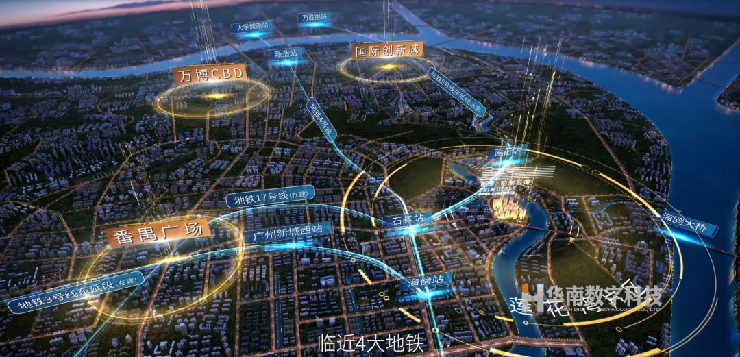 以首铸铂瑞云湾为中心,通过三维射线,划分区域,增加项目和“粤港澳大湾区”之间的联系,更重点标注“莲花湾”等区域范围,展现首铸铂瑞云湾的实力等产品亮点。